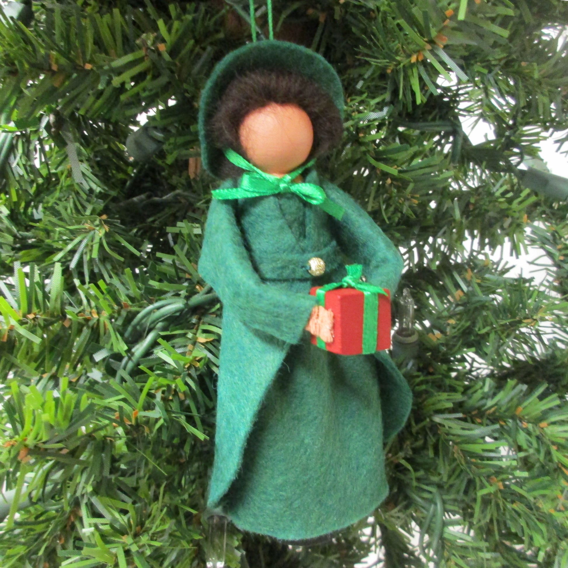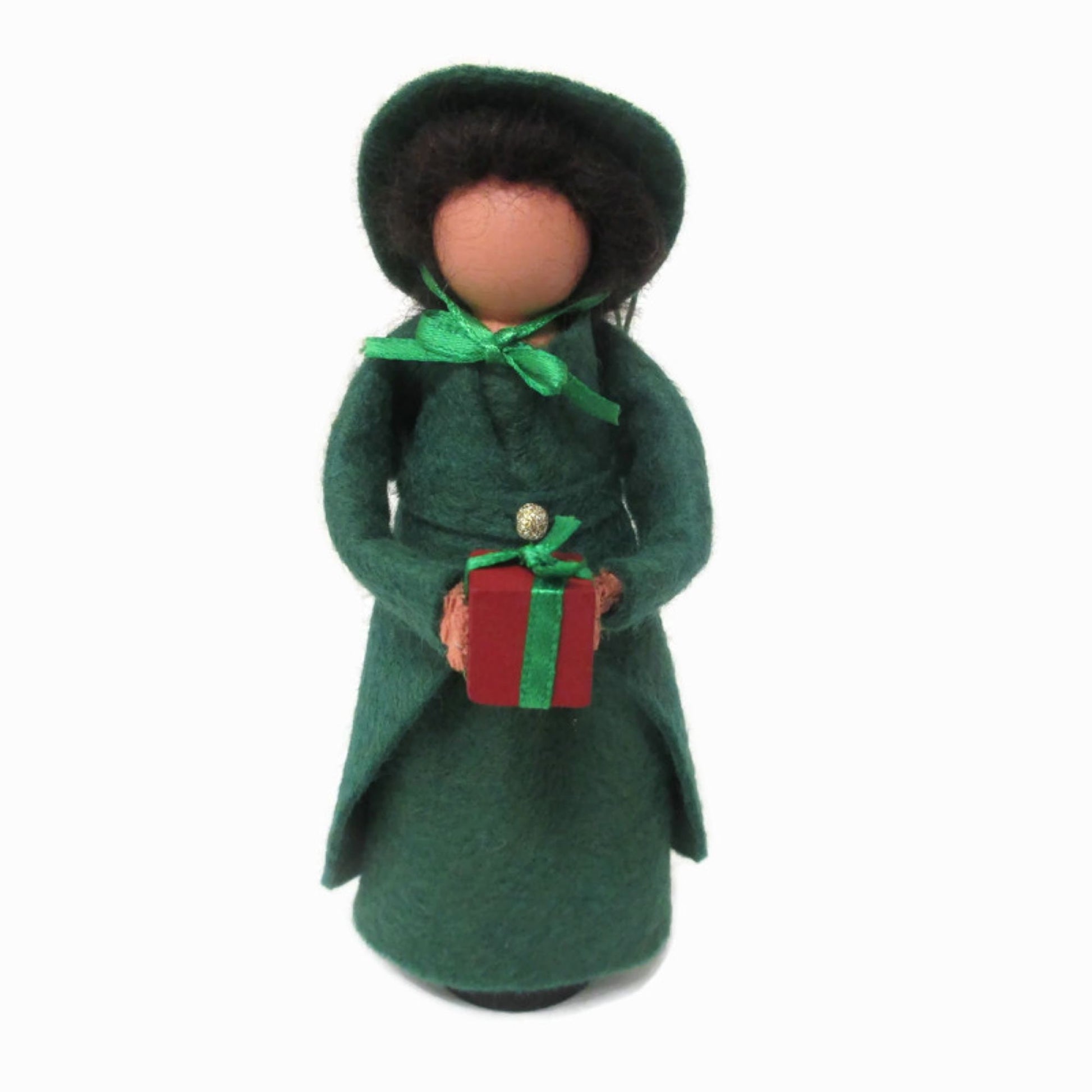 A clothespin ornament of the sweet and wise Belle who once held Scrooge's heart.