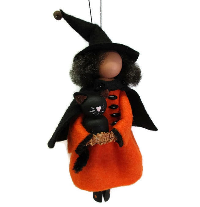 Darker skin options are shown in the last photo. Should you wish your witch to have Medium-Dark or Dark skin tone, please note this in the comments box within the Shopping Cart. Light skinned ornaments are sent unless specified otherwise.