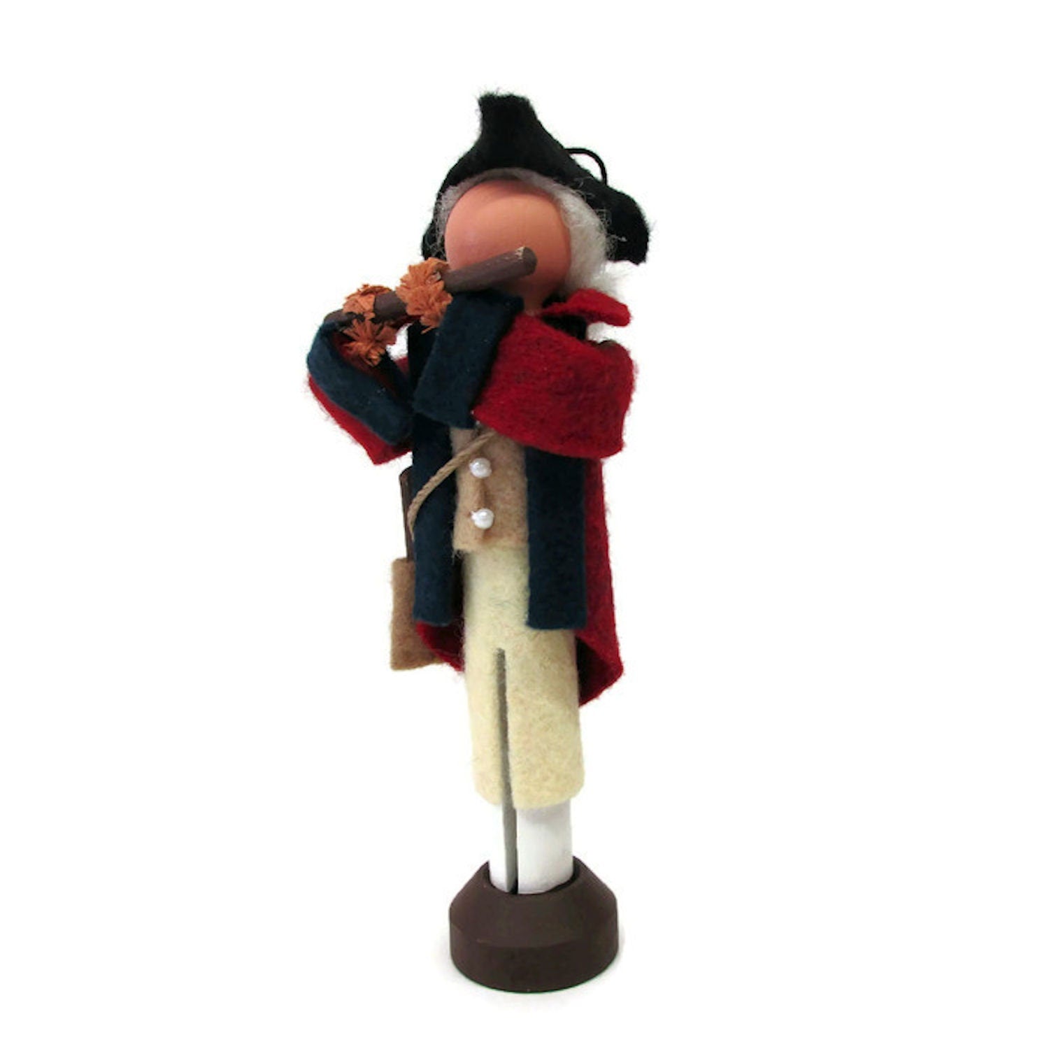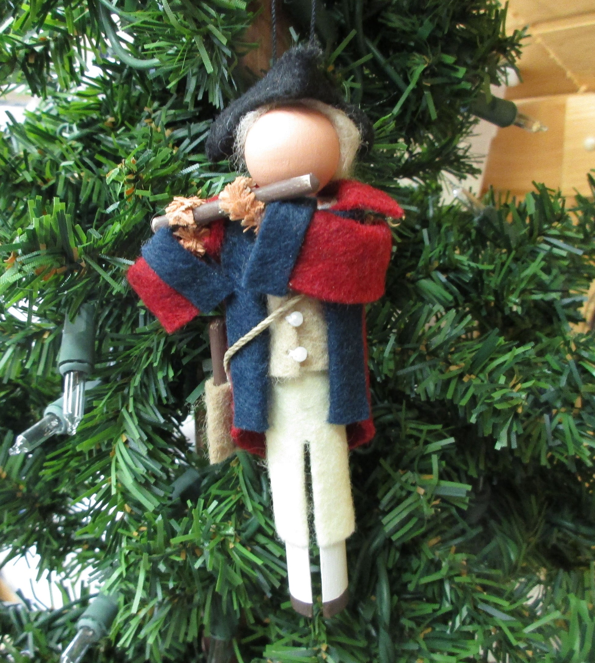 Made from craft wood, a clothespin and wool felt. He is ready to hang on your patriotic tree, or use the included doll stand to stand him on any table, shelf, or tiered tray.
