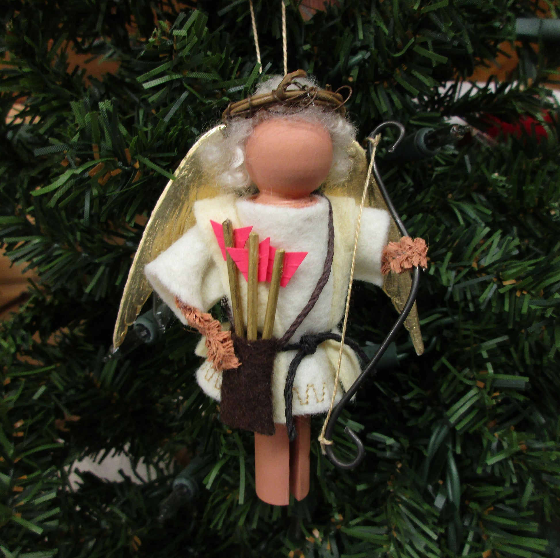 A miniature Cupid, the God of Love, in clothespin ornament form.