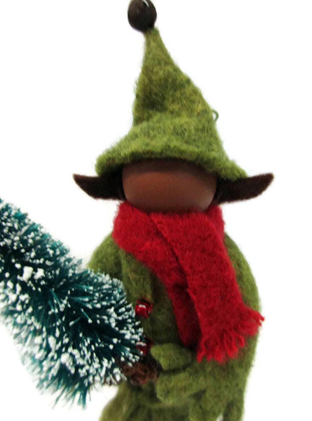 Darker skin options are shown in the last photo. Should you wish your elf to have Medium-Dark or Dark skin tone, please note this in the comments box within the Shopping Cart. Light skinned ornaments are sent unless specified otherwise.