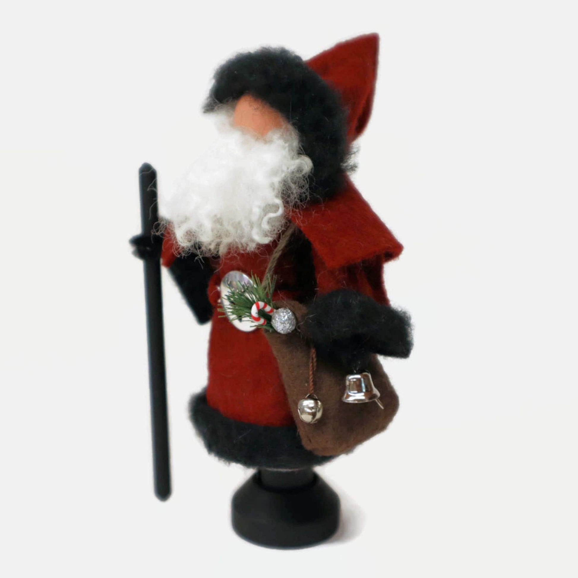 Made from craft wood, clothespin body, and wool felt. He is ready to hang on your holiday tree with a loop through the top of his hat. Or use the included doll stand to display him on any table, shelf or tiered tray.