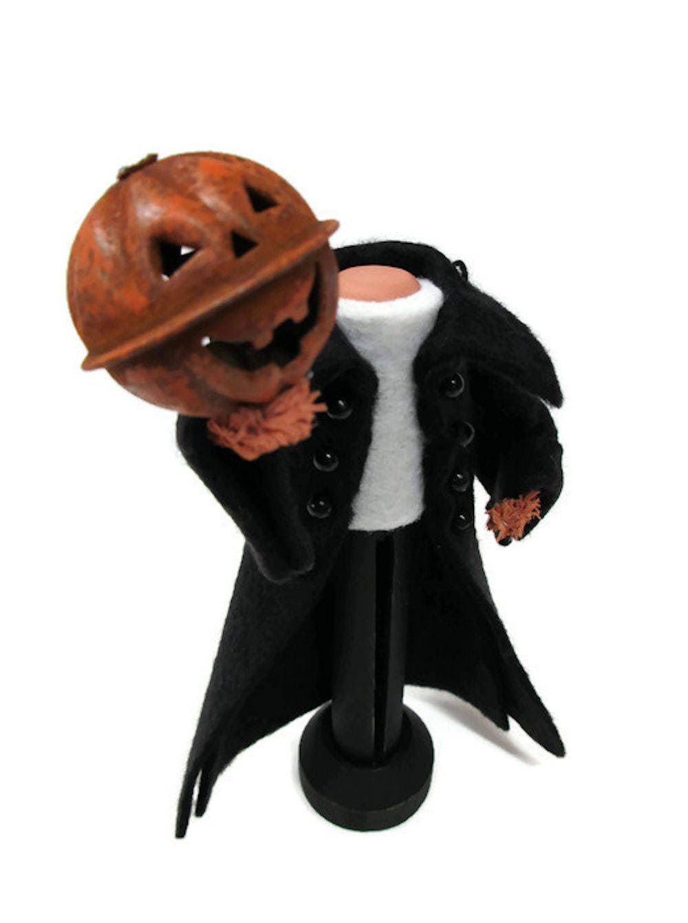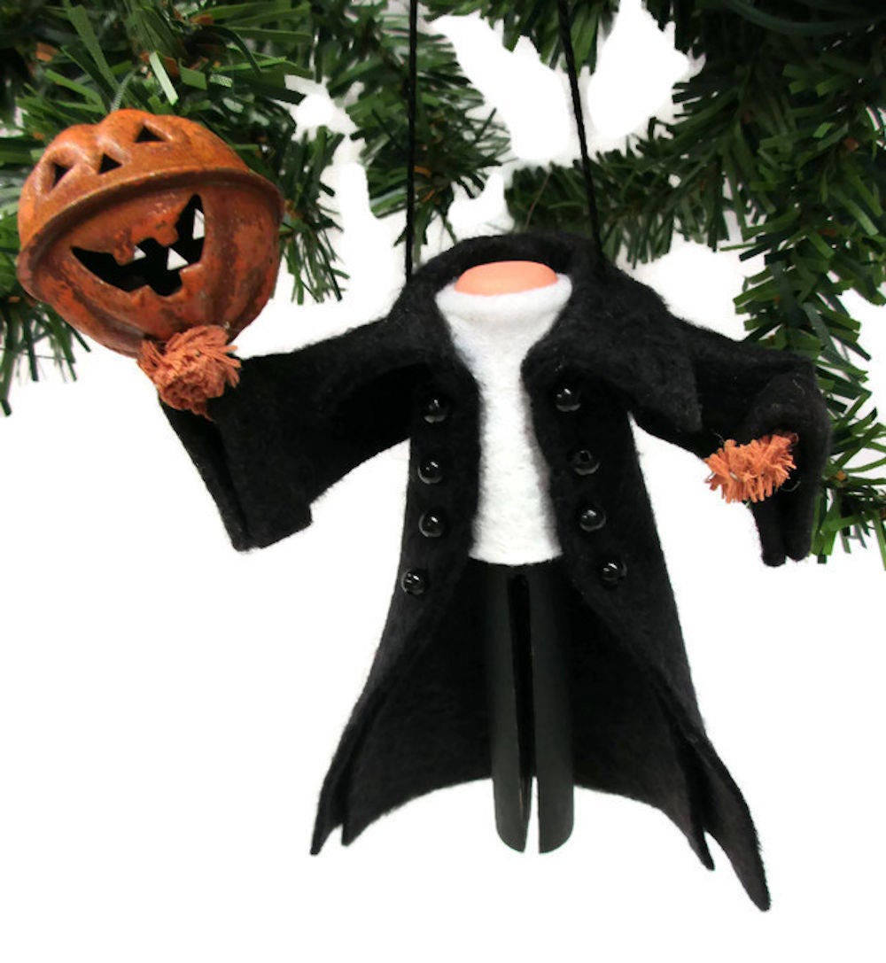 From the pages of Washington Irving's classic tale, a clothespin ornament of the Headless Horseman.
