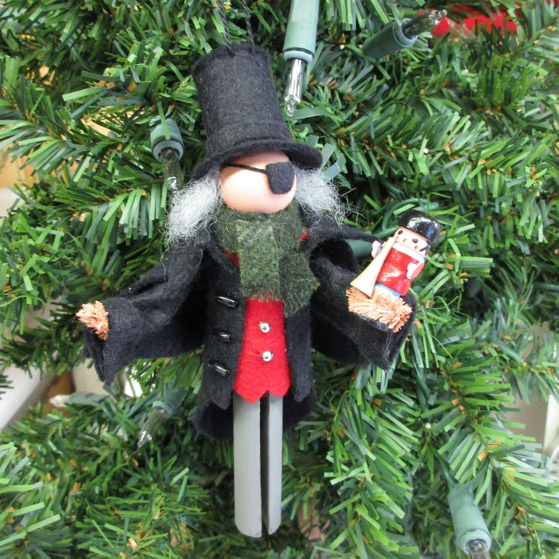 From the Nutcracker tale comes Clara's uncle, Herr Drosselmeyer as a clothespin ornament.