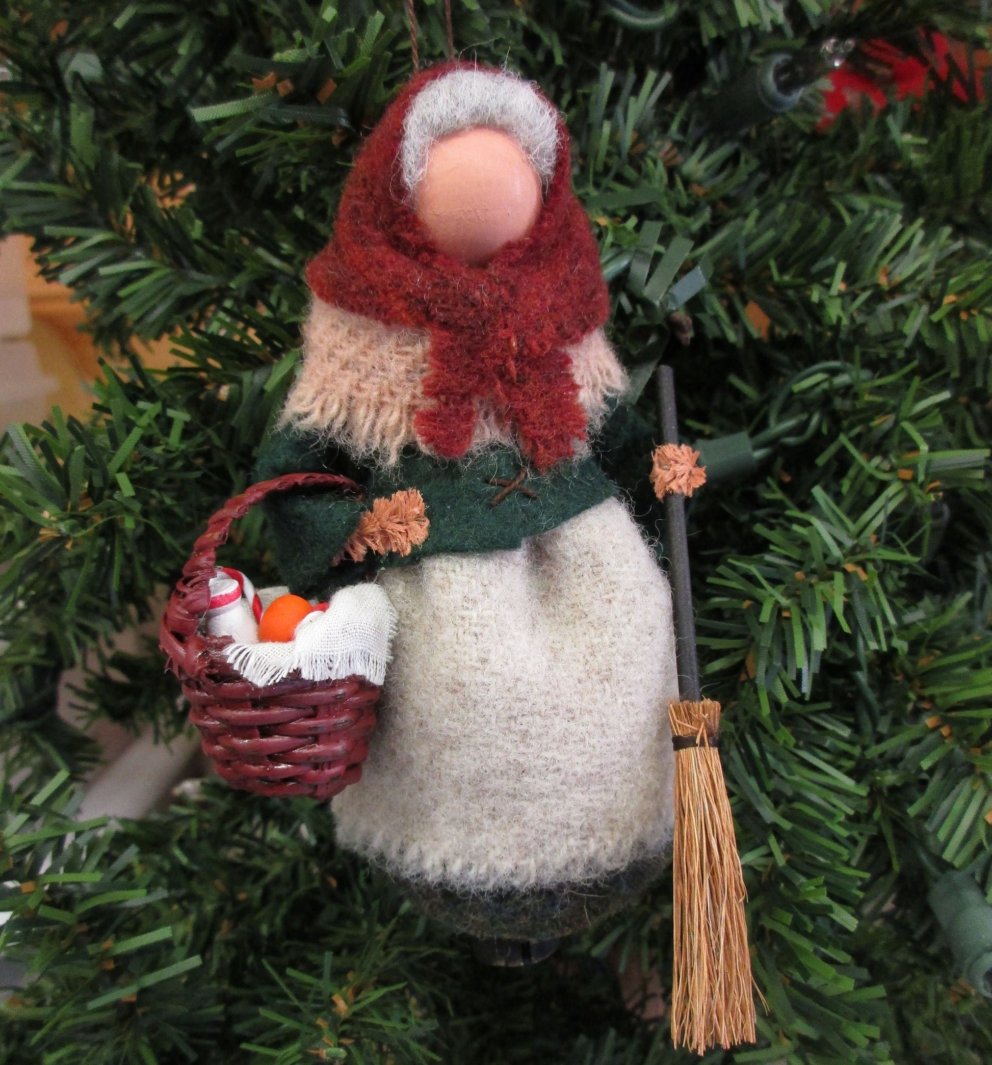 Clothespin ornament of the classic la Befana, the Christmas Witch of Italy,