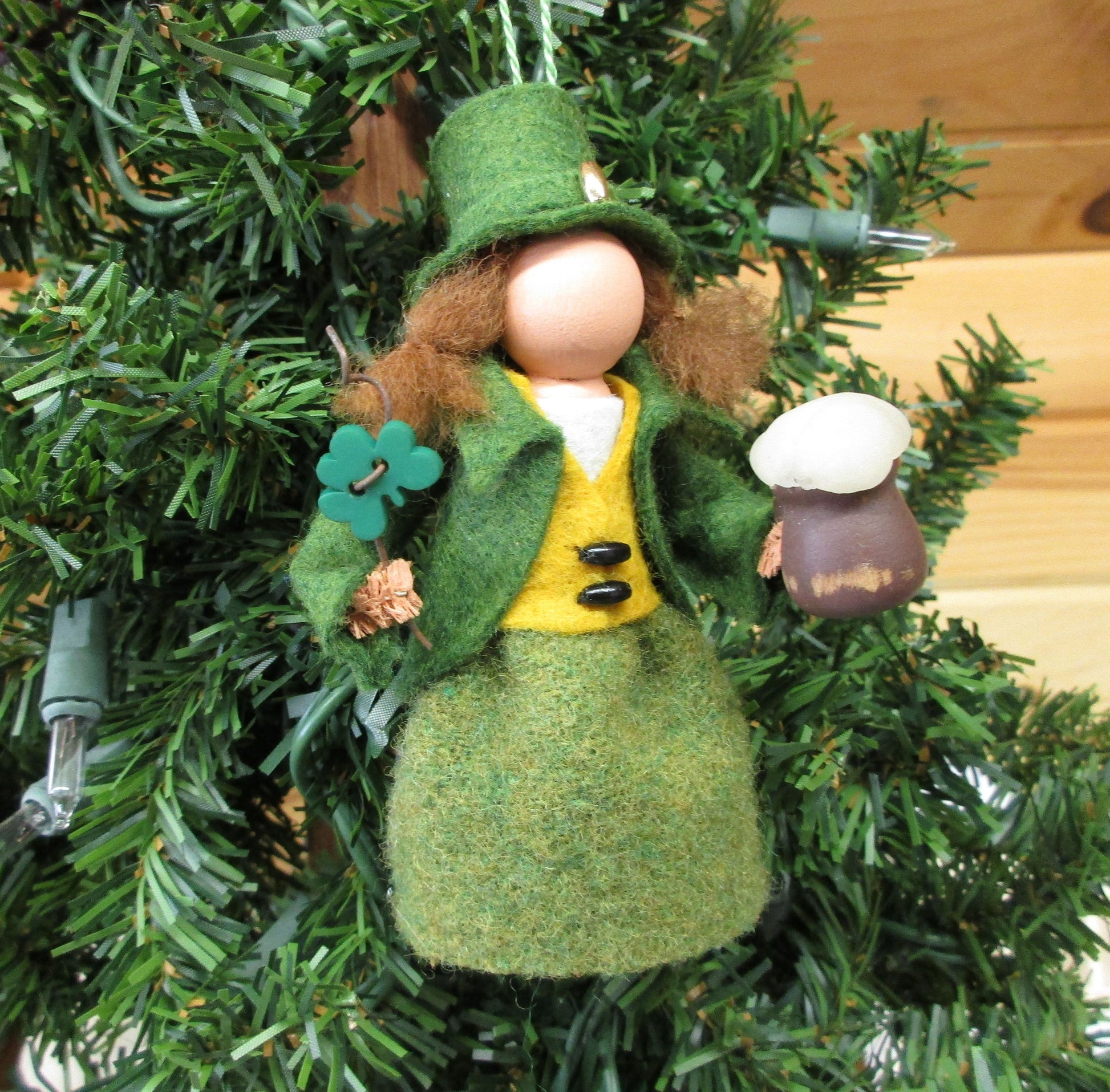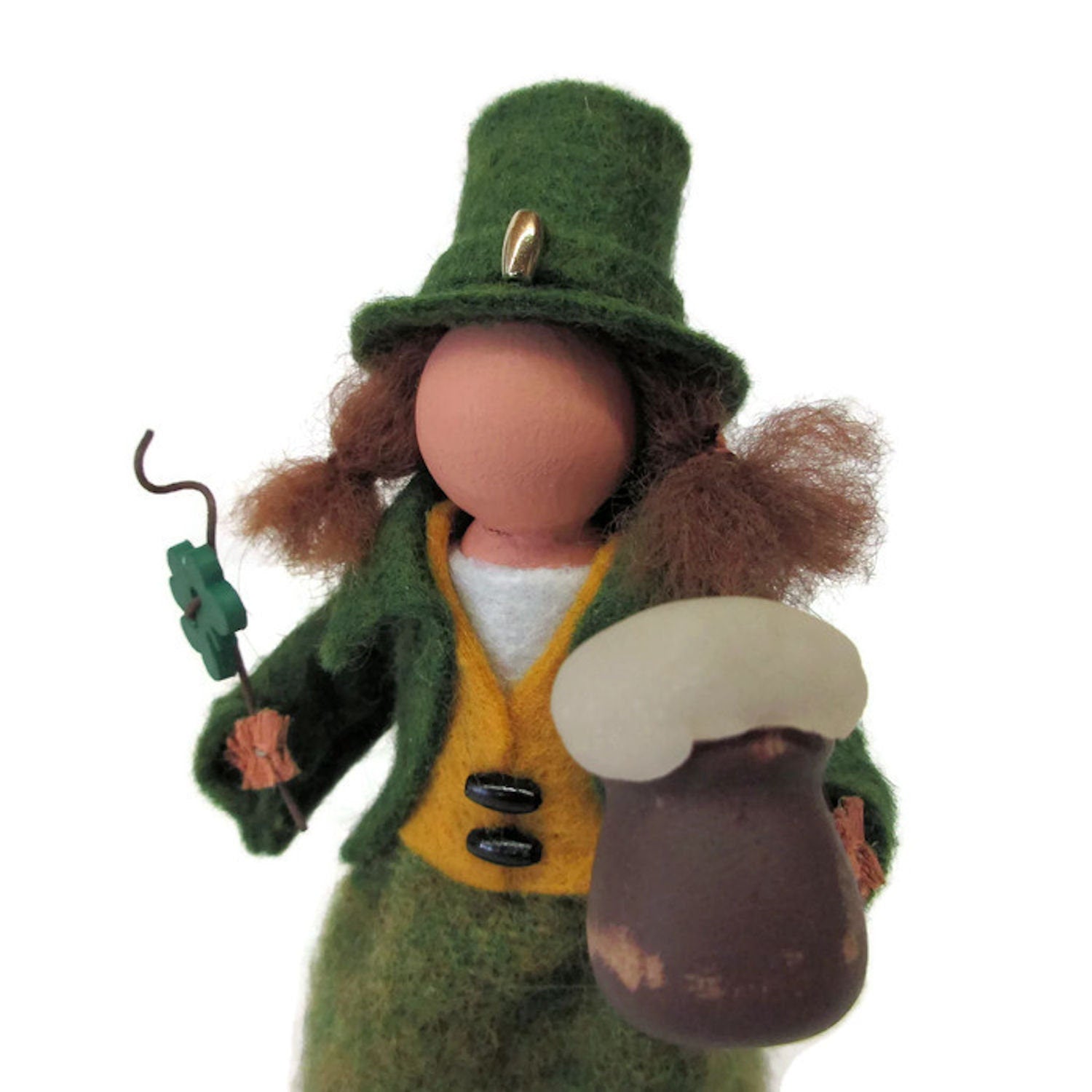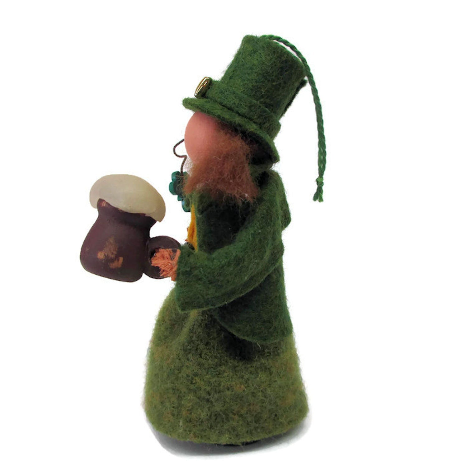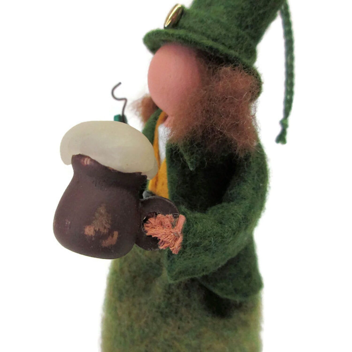 This little clothespin ornament leprechaun lady is ready to celebrate with her Irish pint of ale.