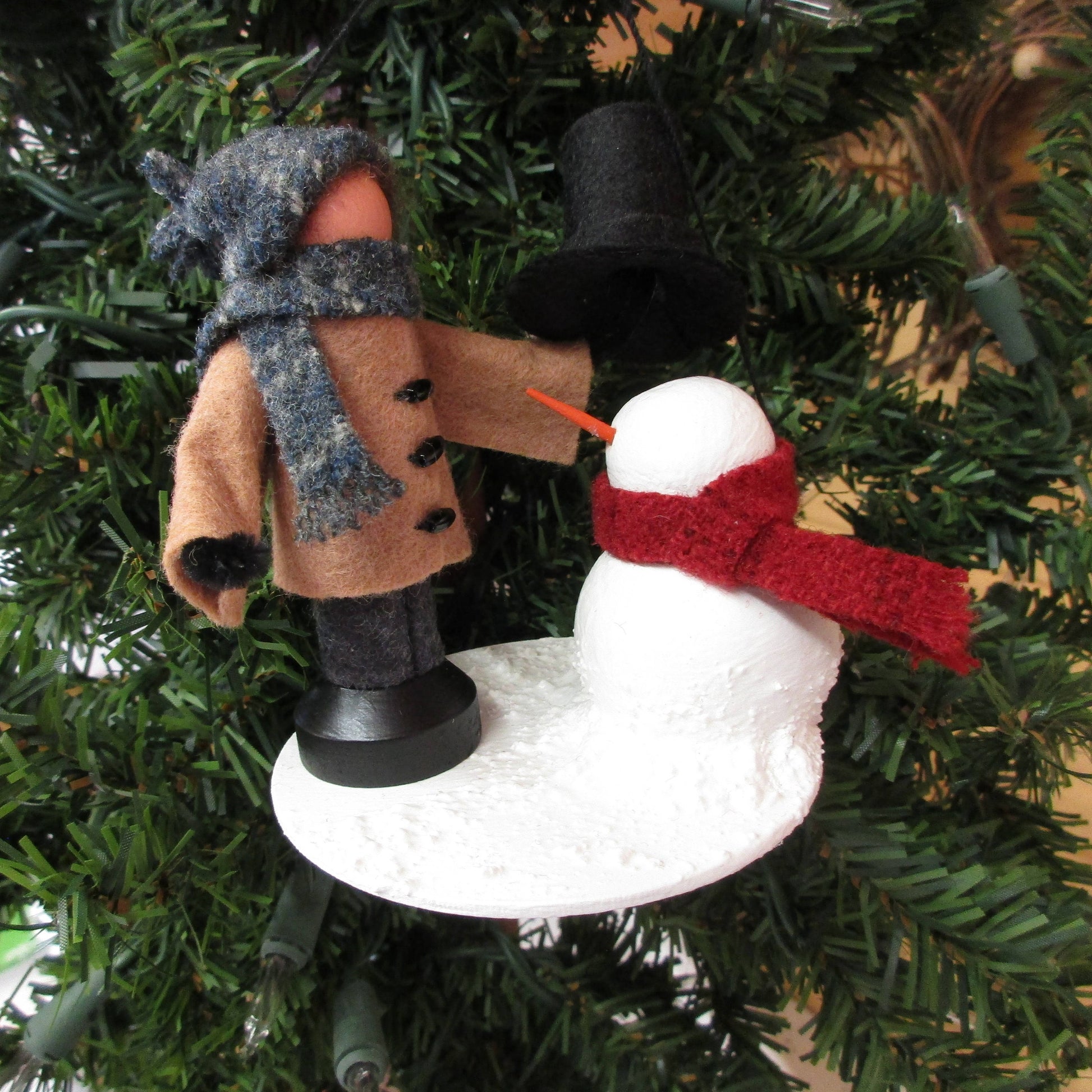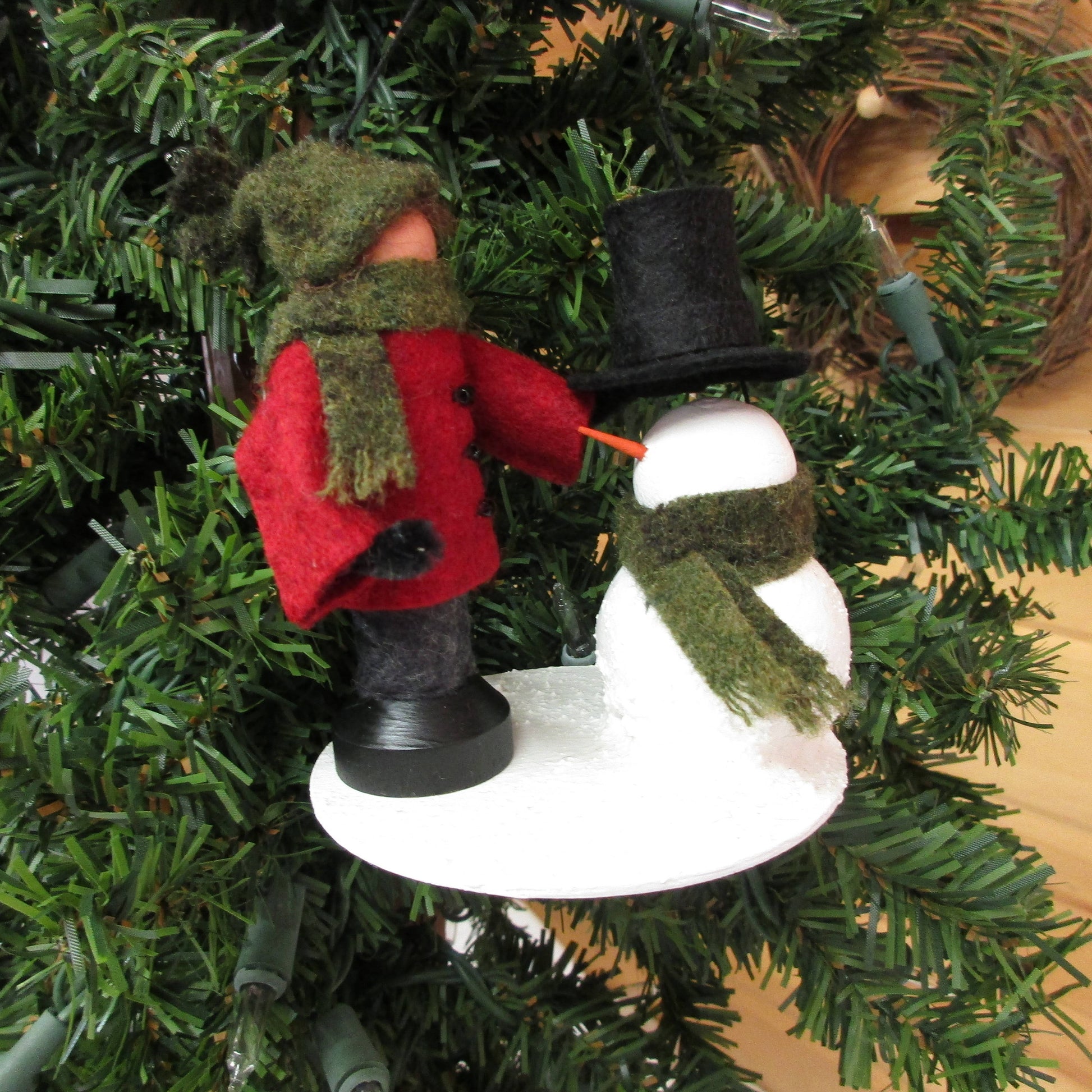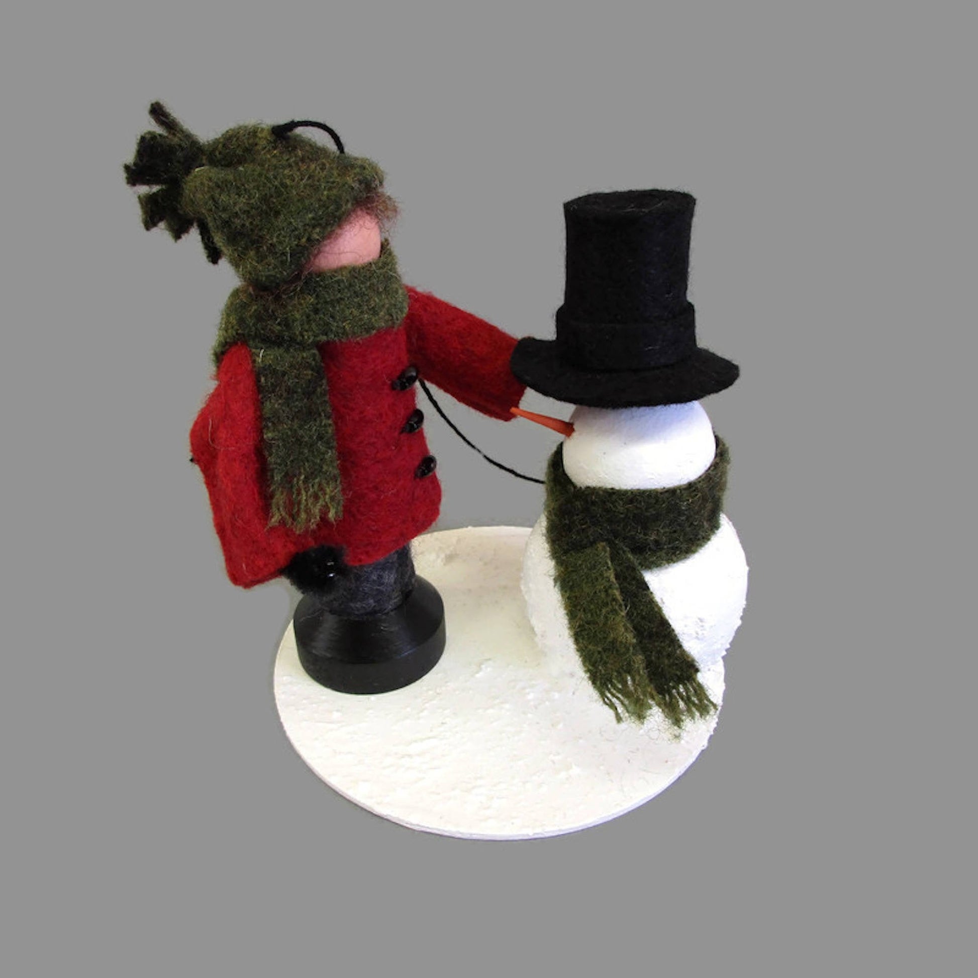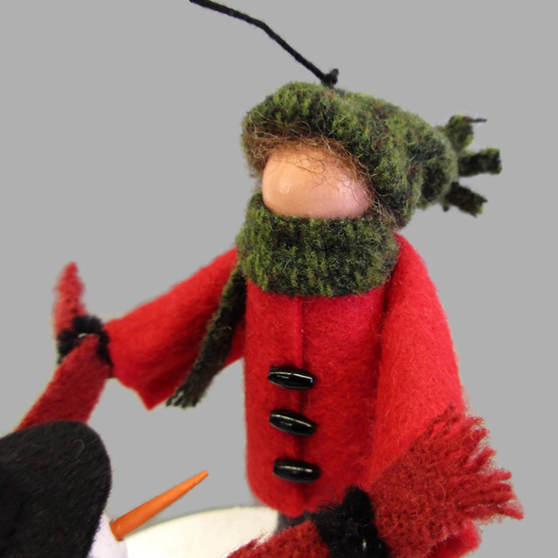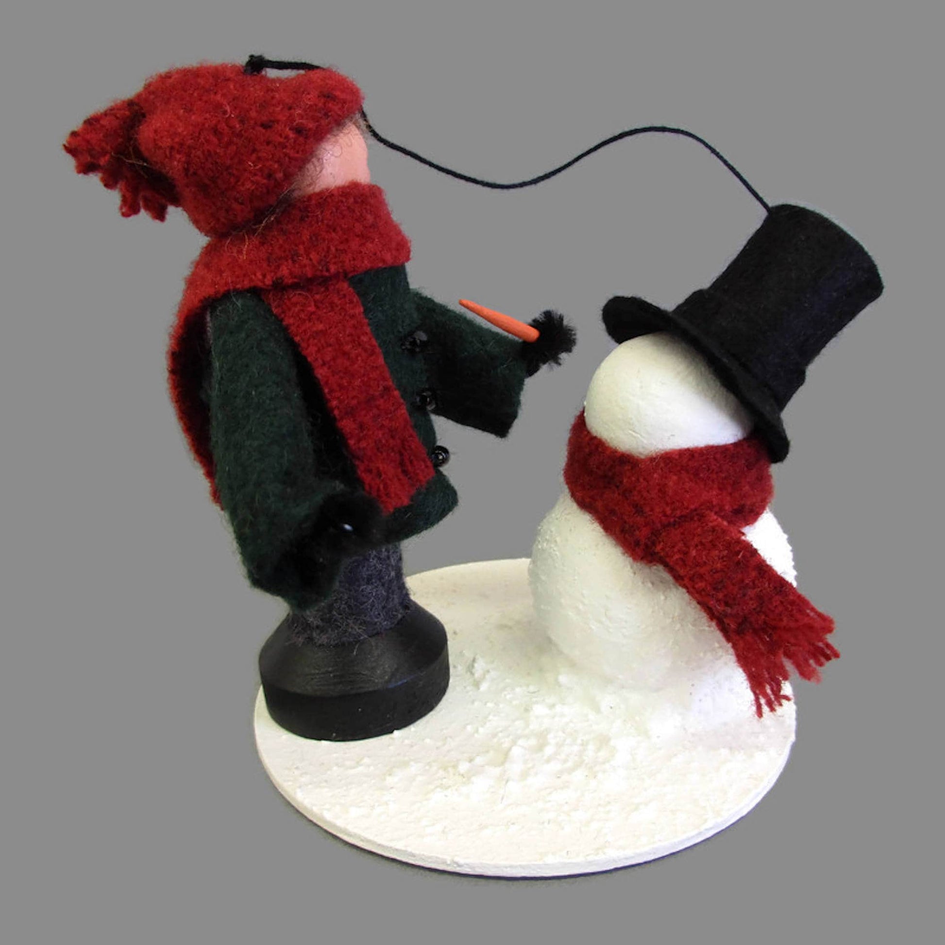 A little clothespin ornament scene with a 0boy building a snowman. Make it your own with choice of his coat color and action.