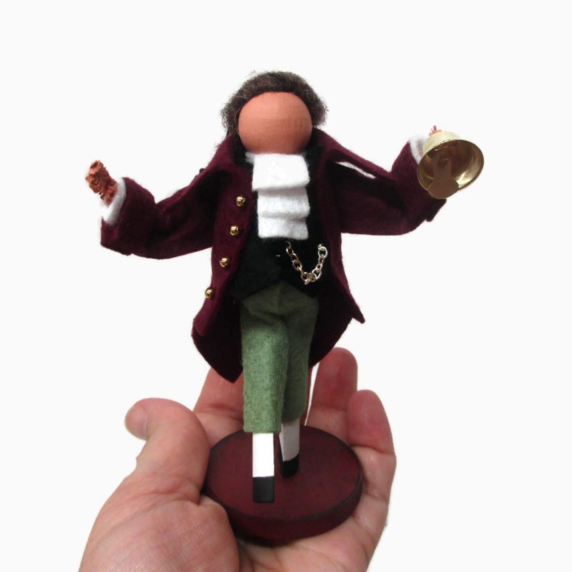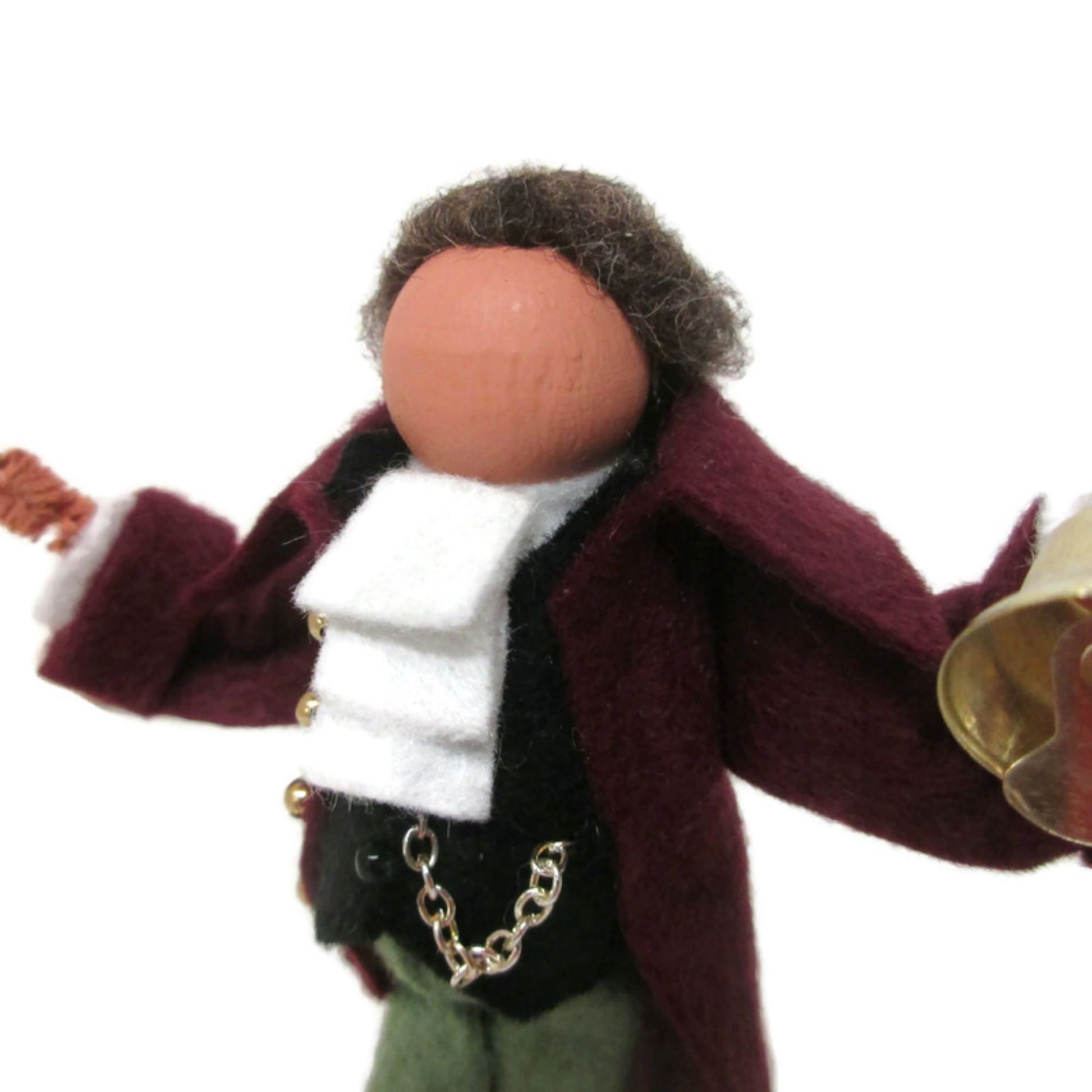 A clothespin ornament of the jovial dancing Mr. Fezziwig.