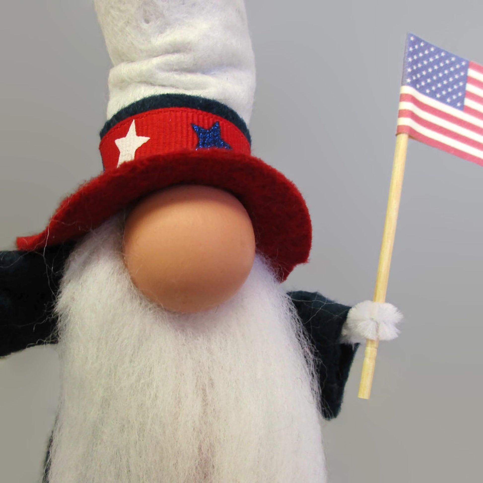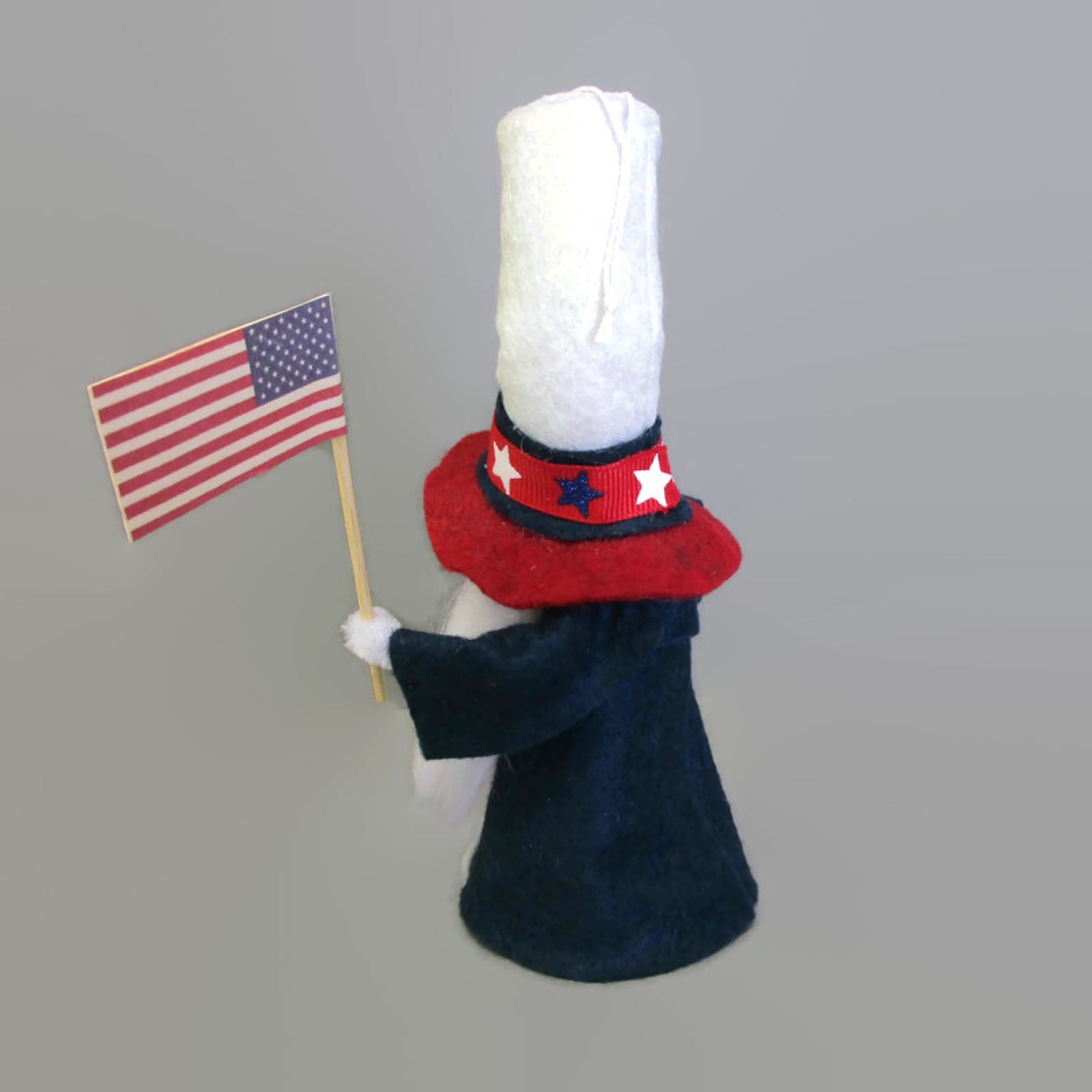 Little gnome clothespin ornament decked out as Uncle Sam.