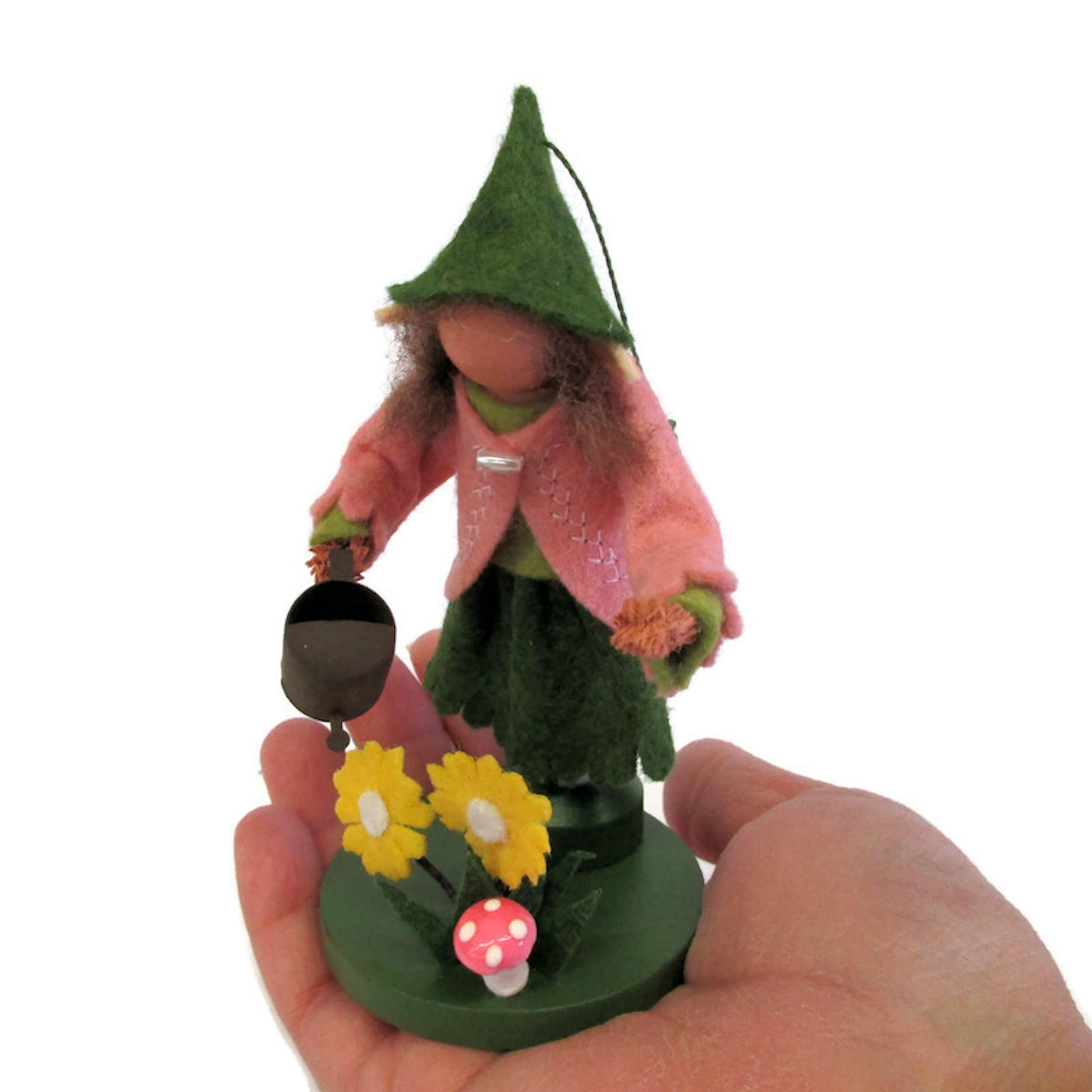 Sweet little clothespin elf scene for your springtime tree or tiered tray décor.