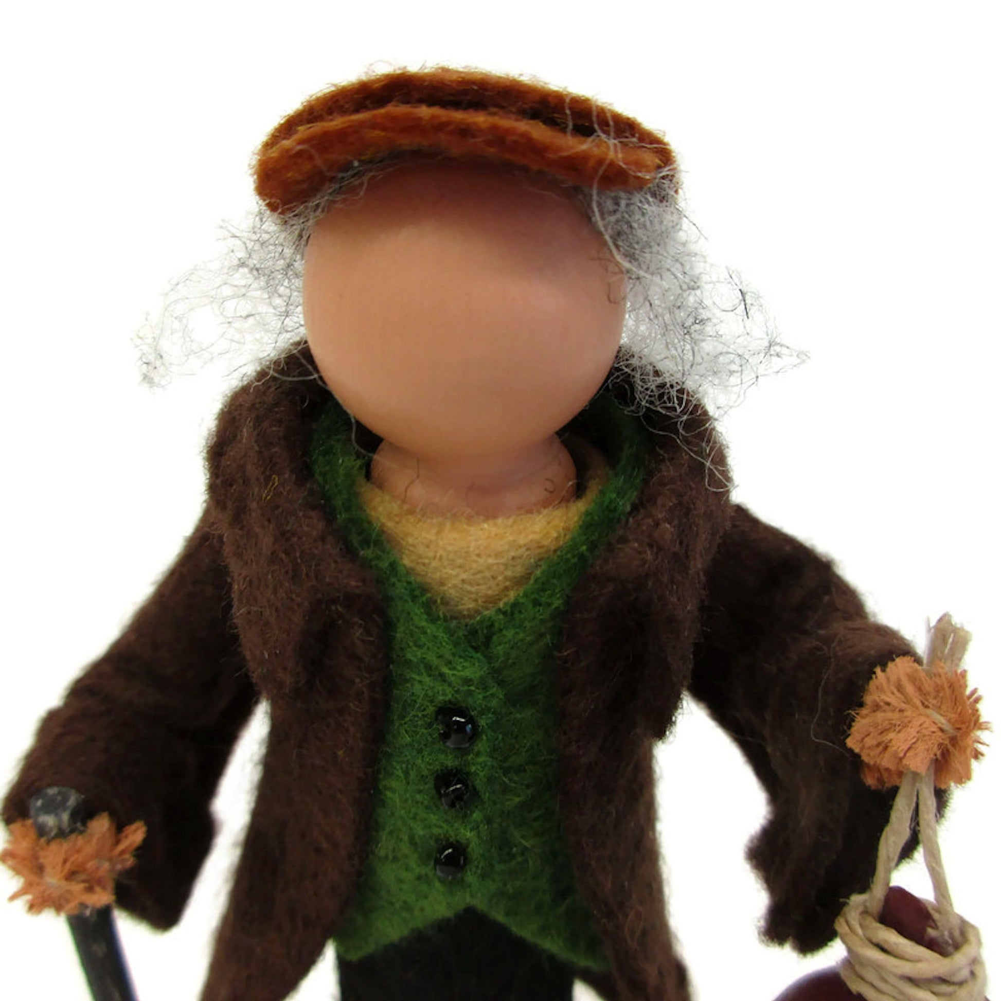 Made from craft wood, clothespin body, polymer clay and wool felt. He is ready to hang on your holiday tree with a loop through the top of his cap. Or use the included doll stand to display him on any table, shelf or tiered tray.