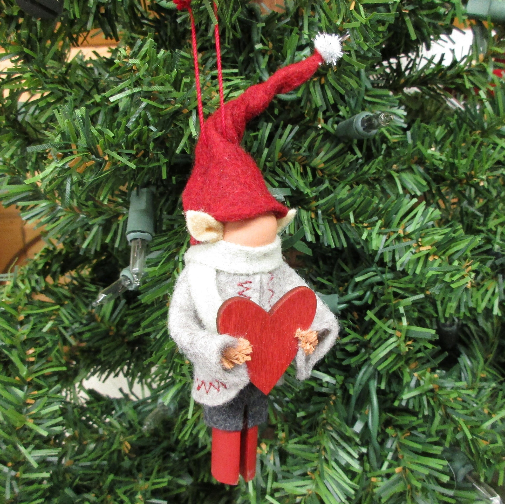 A sweet little clothespin ornament elf for Valentine's Day or year-round.