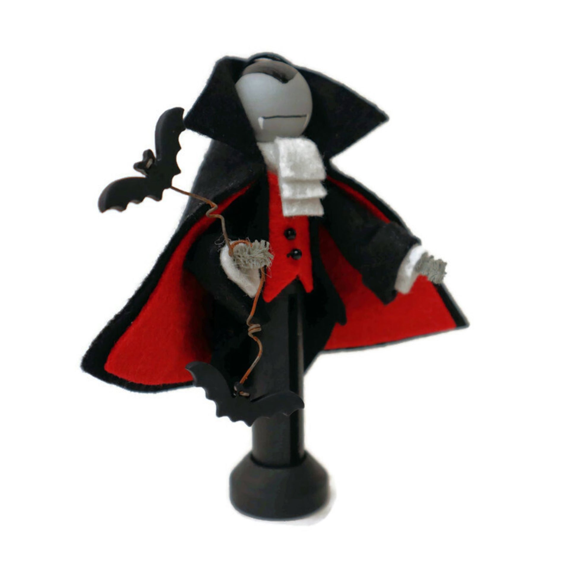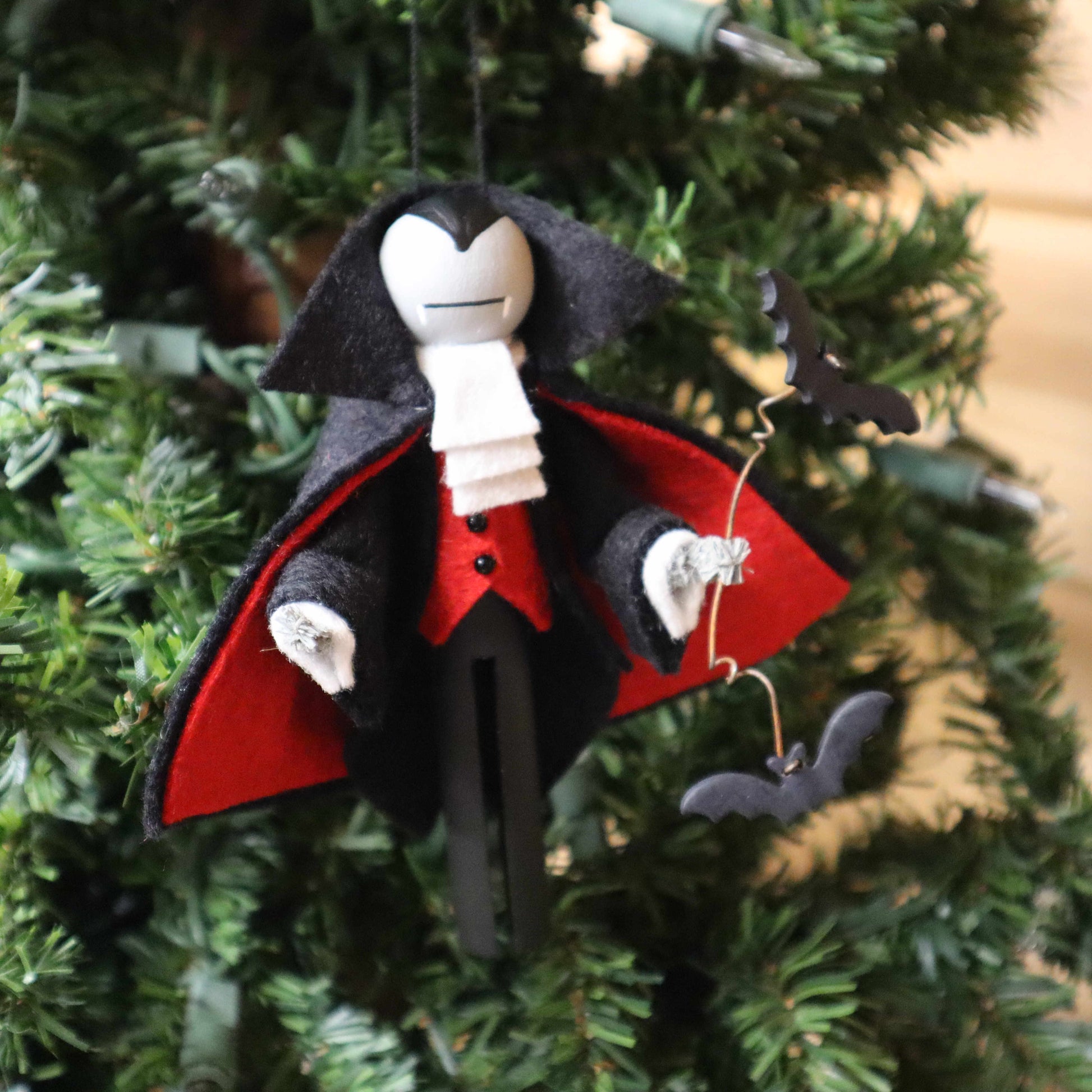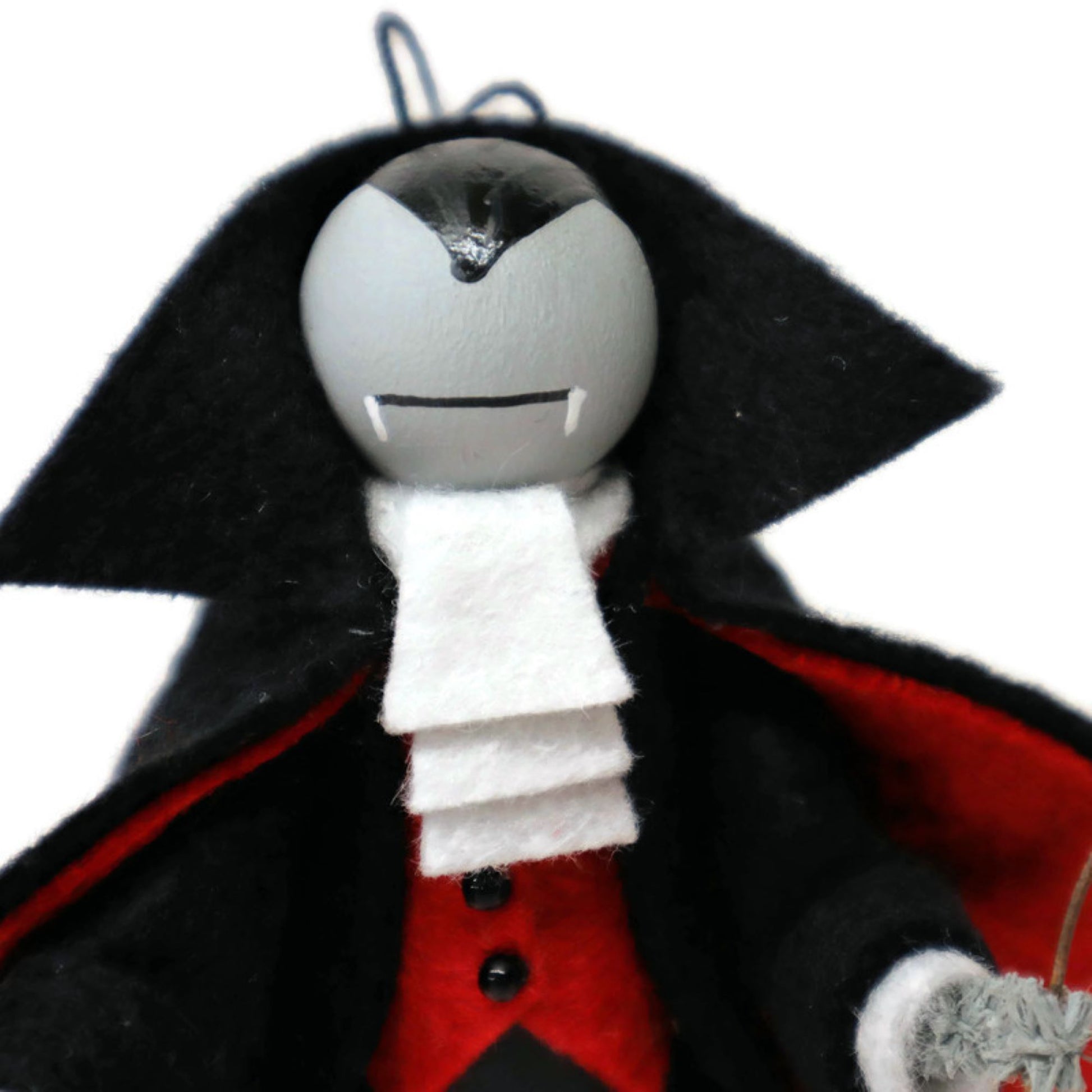 Made from craft wood, clothespin and wool felt. He is ready to hang on your holiday tree with a loop at the top. Or use the included doll stand to display him on any table, shelf or tiered tray.