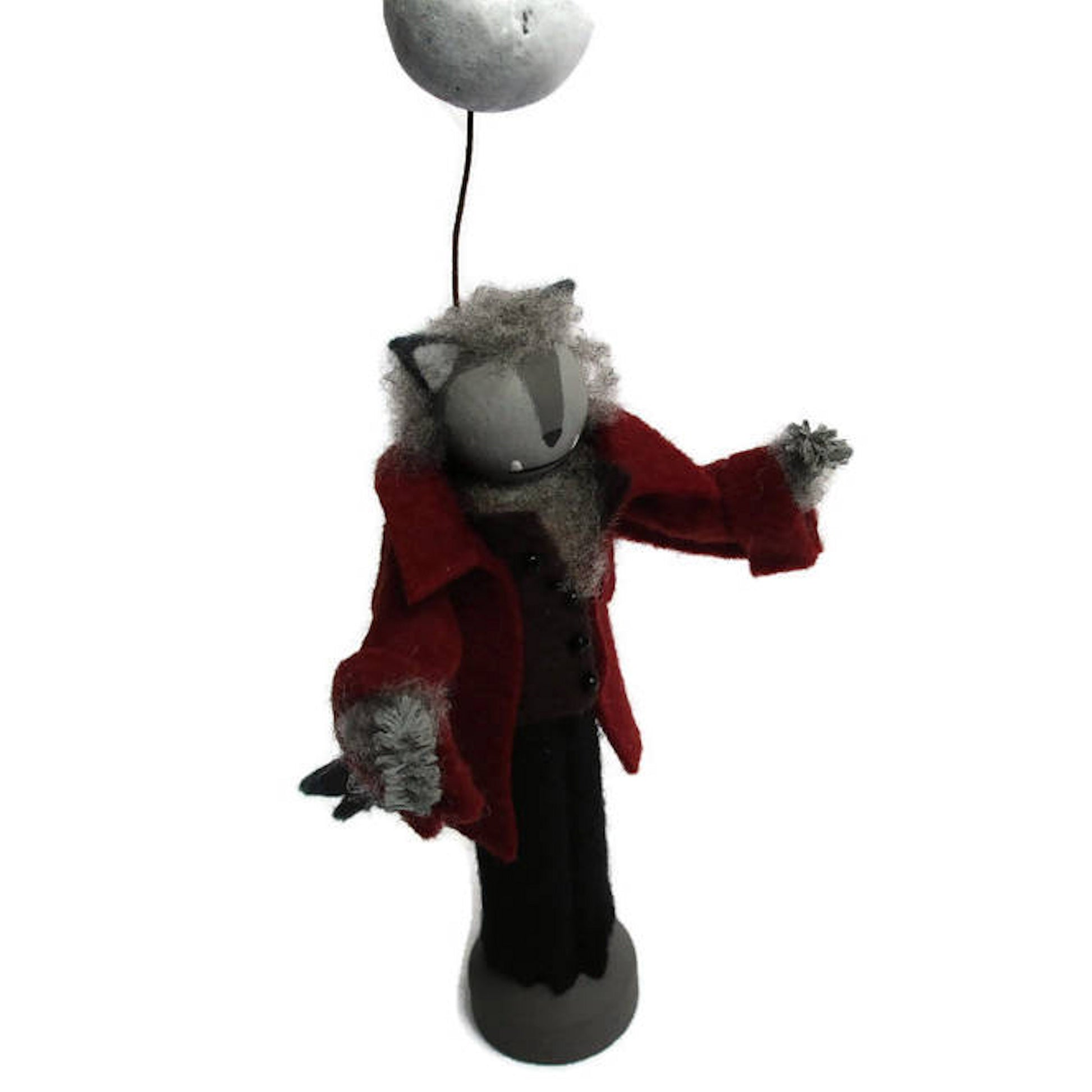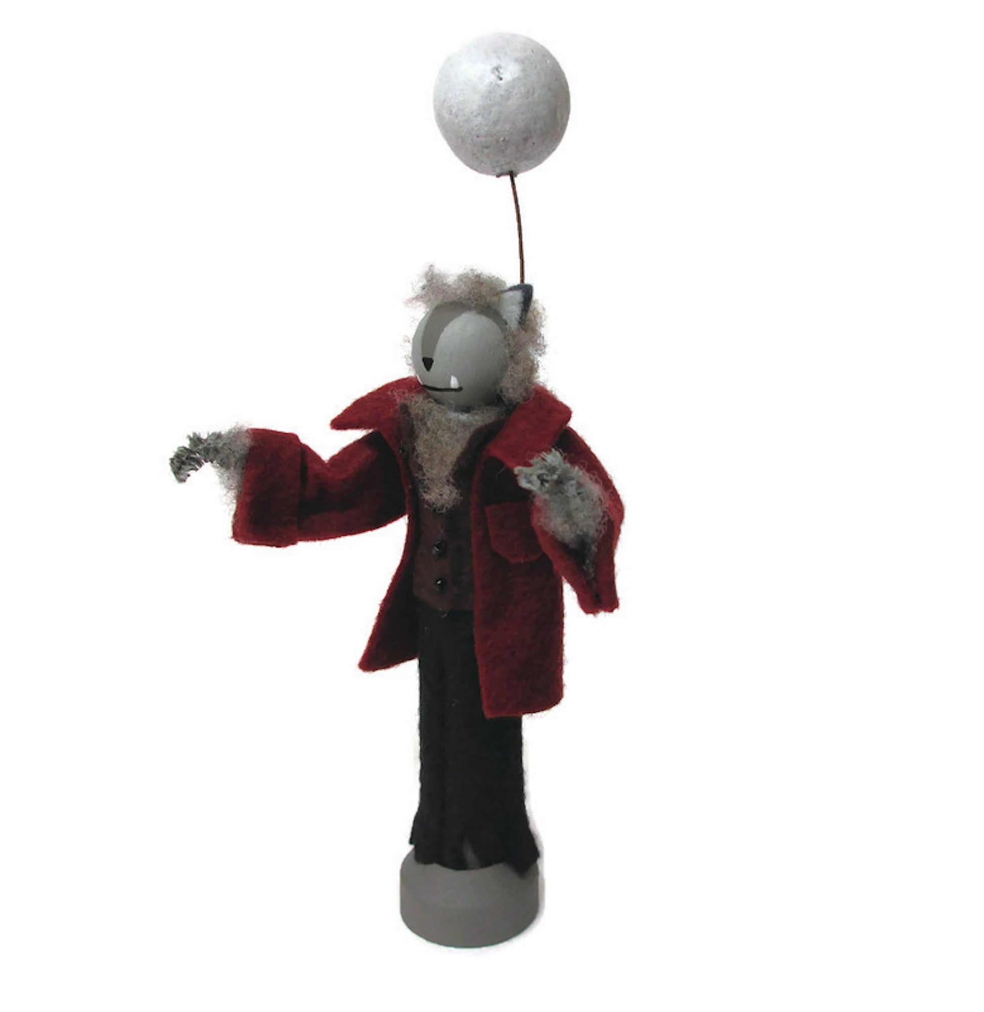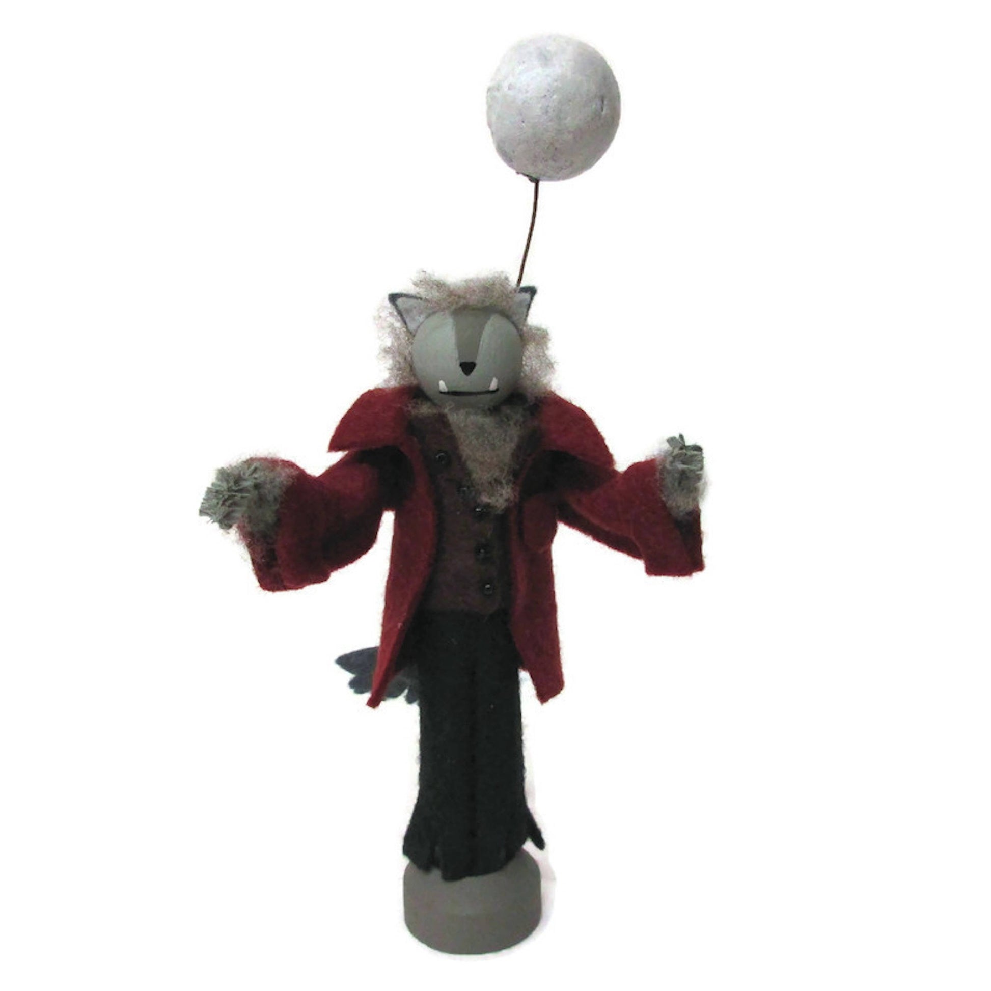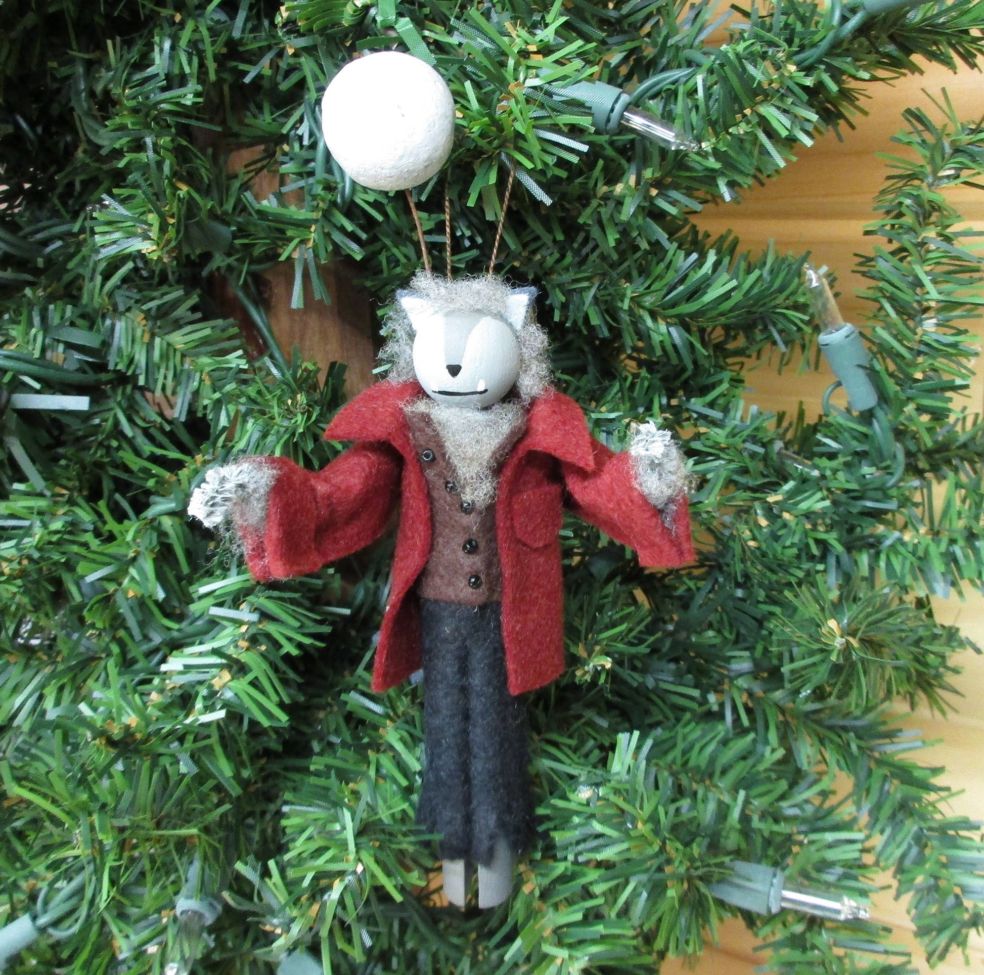 Made from craft wood, clothespin body, spun cotton and wool felt. He is ready to hang on your holiday tree with a loop through the top of his coat. Or use the included doll stand to display him on any table, shelf or tiered tray.