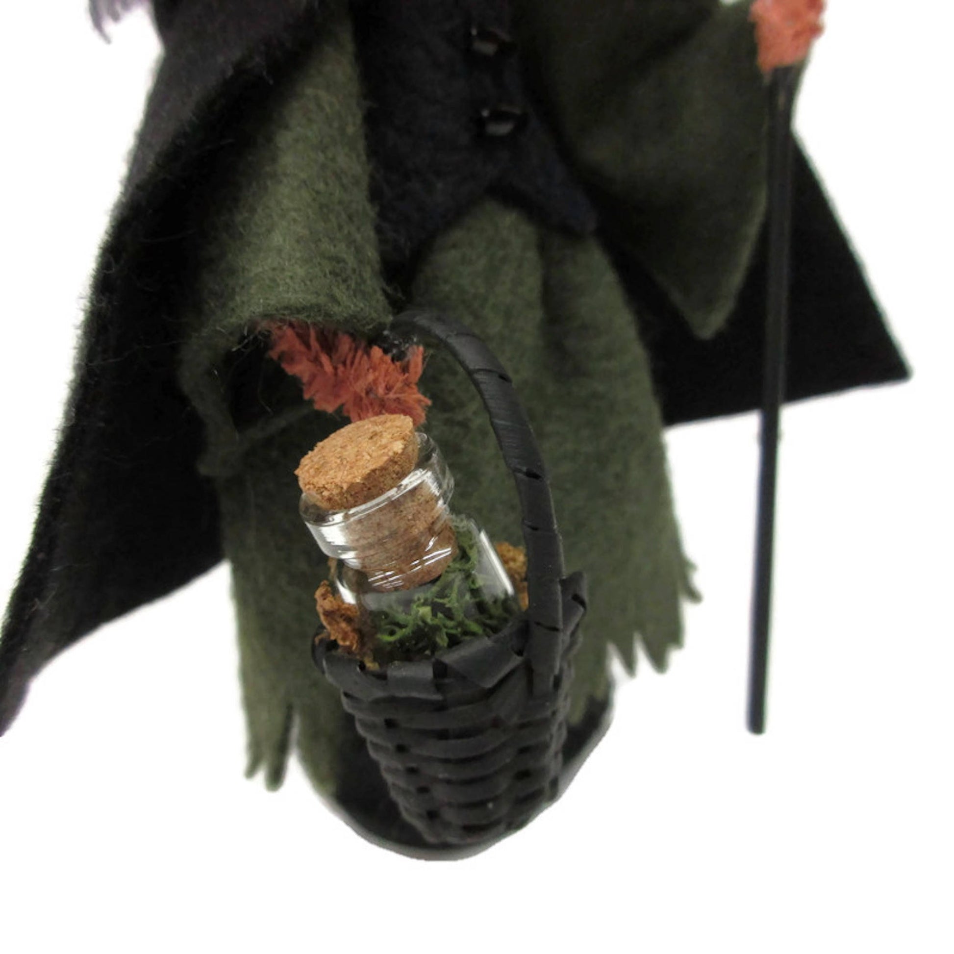 Made from craft wood, clothespin body and wool felt. She is ready to hang on your holiday tree with a loop at the top. Or display her on any table, shelf or tiered tray with the included stand.