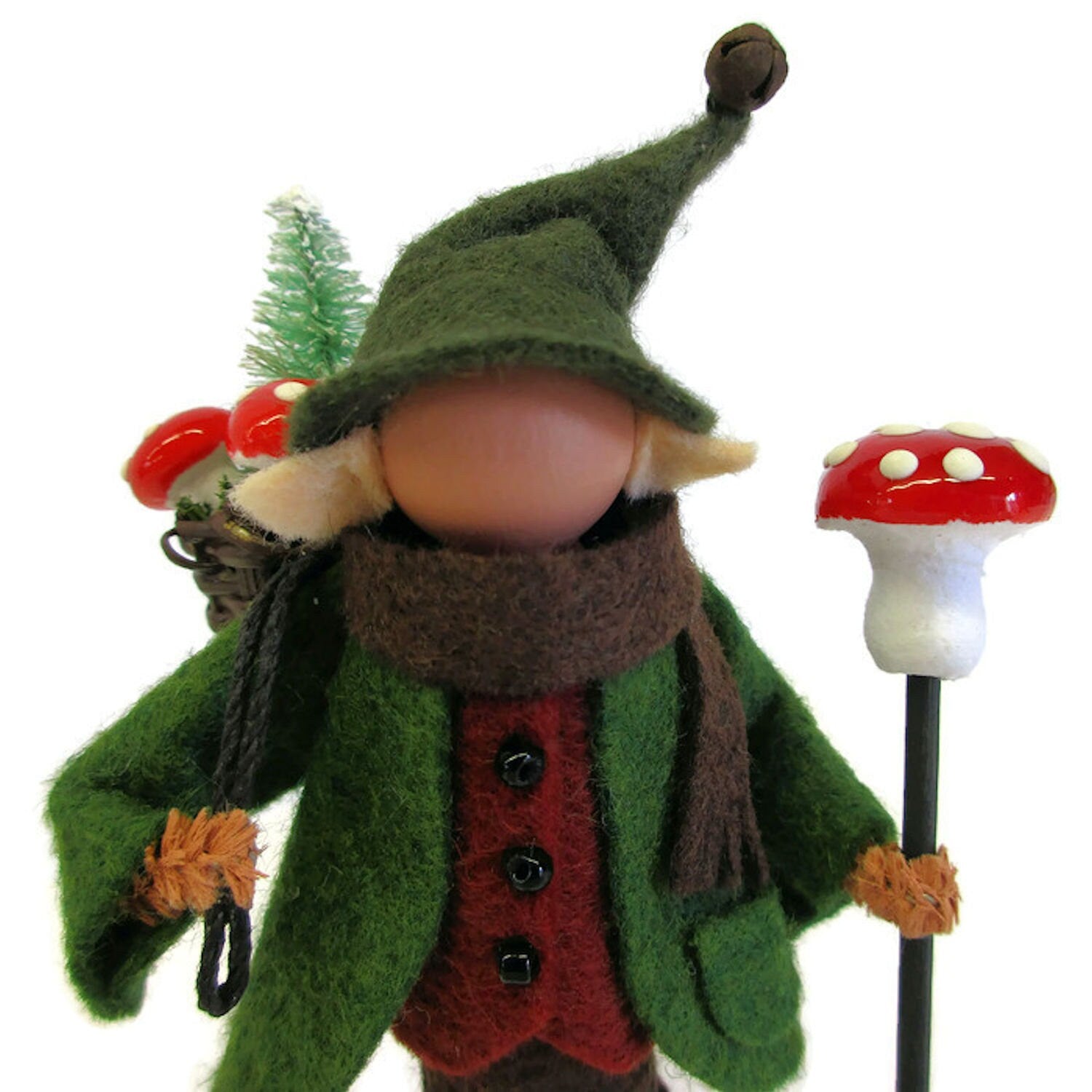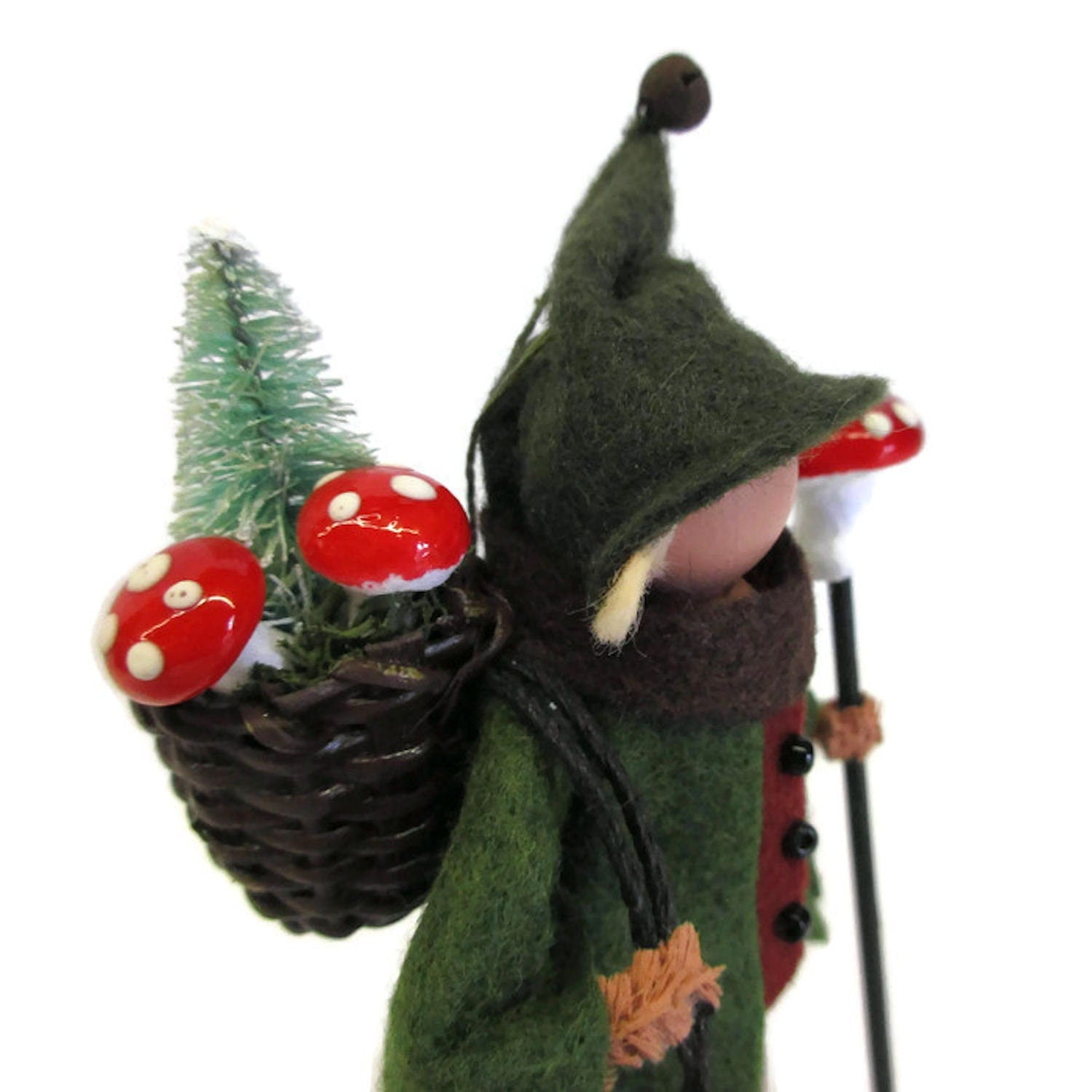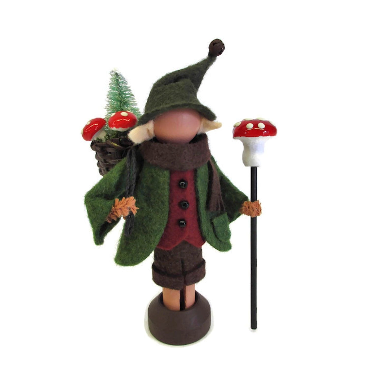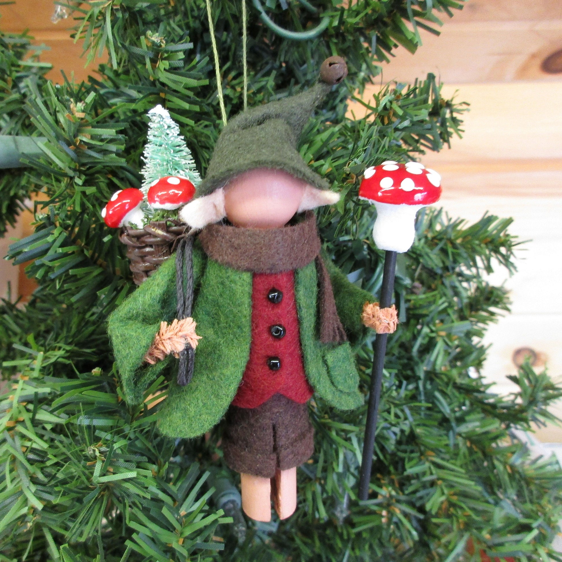 Made from craft wood, clothespin body, and wool felt. He is ready to hang on your holiday tree with a loop through the top of his hat. Or use the included doll stand to display him on any table, shelf or tiered tray.